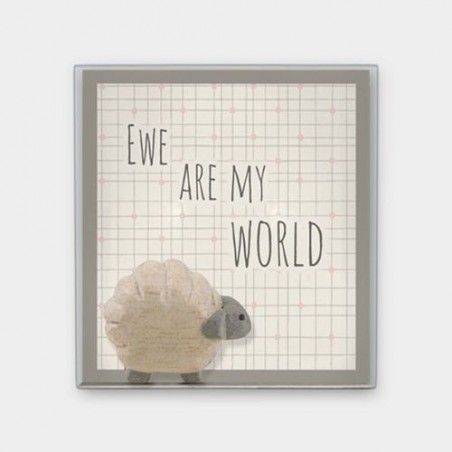 L'avis d’Églantine : Une figurine d'un petit mouton sculpté dans le bois, accompagné d'une carte portant l'inscription " Ewe are my world" le tout disposé dans une boite transparente pour rendre du plus bel effet. Attention, cet objet est en bois. La couleur du bois peut varier d'un article à l'autre. Les tons de couleurs sont gris, beige ou crème. L'objet que vous recevrez sera certainement d'une couleur différente de la photo sans qu'aucune réclamation sur ce point puisse être recevable. Merci pour votre compréhension. Dimensions : Boite : 5.5 x 5.2 x 2 cm Figurine : 2.5 x 3 x 2 cm environ Matière : Bois