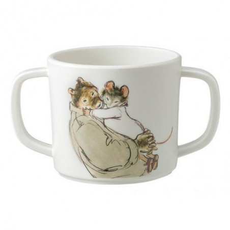 L'avis d' Églantine : Une tasse antidérapante, avec deux anses pour permettre une bonne prise en mains des touts petits. Le motif d'Ernest et Célestine se faisant un gros câlin est tout simplement adorable.