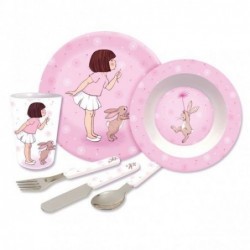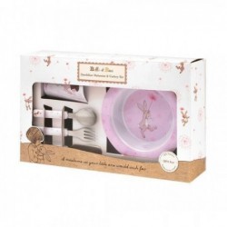 L'avis d’Églantine : Un set de vaisselle Belle & Boo contenant six pièces. L'assiette,le bol et le verre conviennent aux enfants dès le plus jeune age, les couverts à partir de 6 mois. Ne passe pas au micro-ondes Matière : Mélamine Créatrice : Mandy Sutcliffe - Bristol , Angleterre.