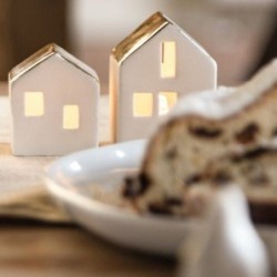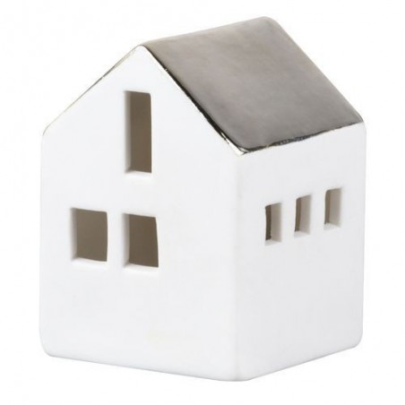 Une petite maison au toit argentée s'illuminant grâce à sa LED intégrée.