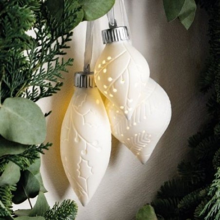 Nouveauté bientôt disponible ! Cette décoration lumineuse appartient à la collection féerique Jewel of light. La porcelaine perforée retranscrit le motif de branche de sapin et diffuse une lumière chaleureuse grâce à une LED intégrée.