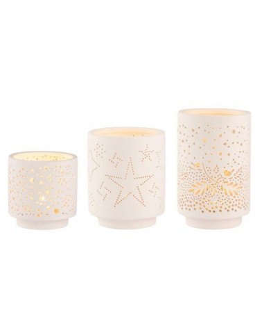 De très jolis photophores de la marque allemande Rader, ajourés et sculptés en dentelle pour laisser passer la lumière avec féérie !