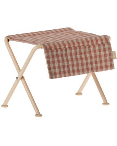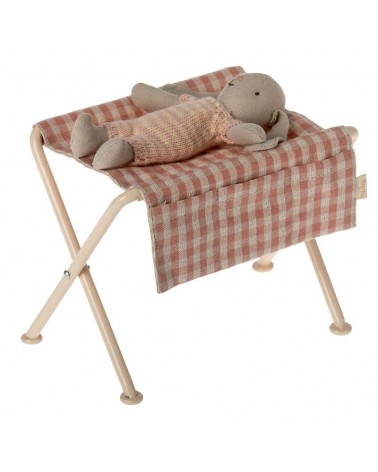Une ravissante table à langer à petits carreaux bordeaux signée maileg !