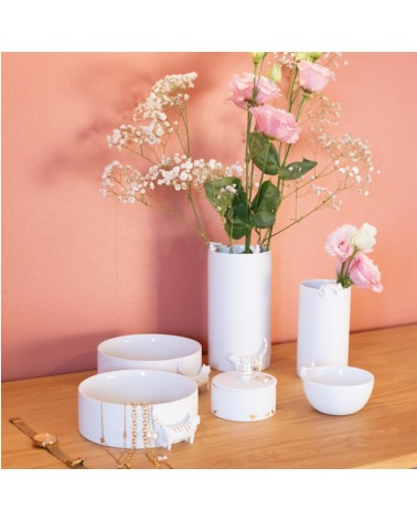 Cet adorable vase Rader en porcelaine biscuit orné de beaux petits oiseaux et d'un chat tigré doré est d'une poésie qui nous laisse rêveurs ! Glissez y vos fleurs préférées, qu'elles soient fraîches ou séchées. Vous pouvez aussi laisser ce vase en tant qu'objet décoratif, il se suffit à lui même.