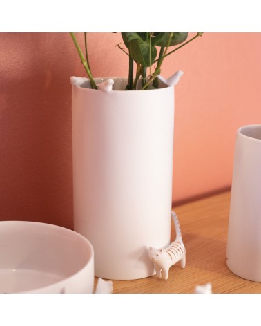 Vase en porcelaine - Le chat et les oiseaux - Rader