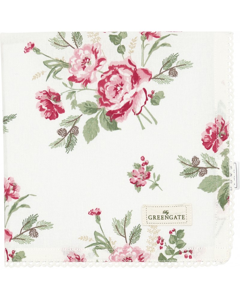 La serviette est comme le reste du linge au panier d'églantine, magnifique et donne un côté romantique. Par contre, c'est dommage que le décor ne soit pas recto/verso mais on l'oubli rapidement. Les coutures et petites dentelles sont parfaites c'est du travail soigné.