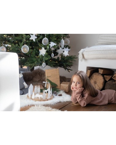 Un petit coeur à suspendre décoré de reliefs étoilés qui rappelle les biscuits féériques d'Alsace, références aux contes de fées.