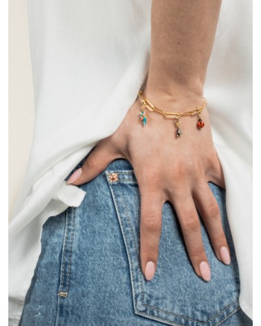 Les charm's Nach sont en porcelaine et laiton doré à l'or fin 24 carats. Certifié sans nickel et sans risque d'allergie.