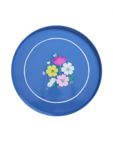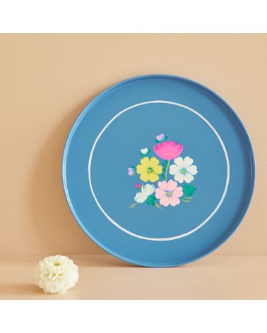 Plateau Rond - Rice - Métal - Bleu - Bouquet de printemps