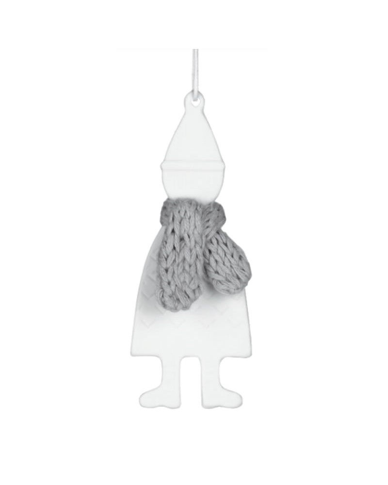Une suspension de la marque de décoration allemande Rader en porcelaine blanche et mate de très belle qualité. Un toucher agréable et un rendu très élégant pour ce gentil personnage d'hiver. Ce petit lutin à suspendre dans le sapin ou dans tout autre endroit de votre choix, porte une douce écharpe en coton tricoté de couleur grise. De quoi décorer la maison avec harmonie et magie !