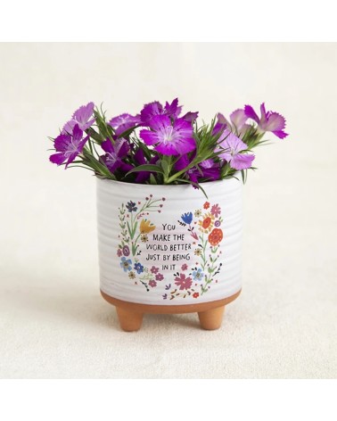 Très joli pot de fleurs en Terra Cotta avec la si charmante inscription : You make the world better just by being in it. "Tu rends le monde meilleur, rien qu'en en faisant partie !" Vous pourrez y mettre des fleurs, des bonbons, des crayons !