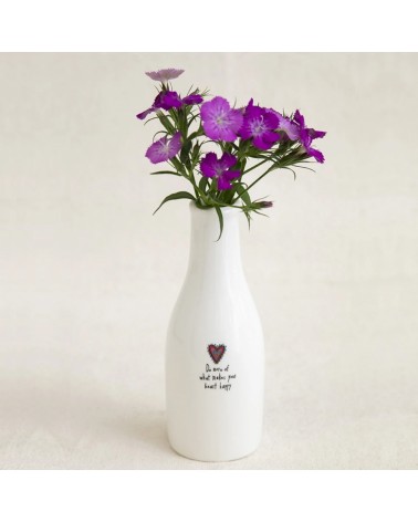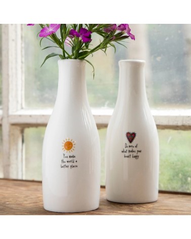 Très joli vase en Terra Cotta avec l'inscription : Do more of what makes your heart happy (Fais plus de ce qui rend ton cœur heureux). Dans un style simple et joyeux, ce petit vase soliflore (bien qu'il puisse contenir plusieurs fleurs) est de toute beauté et fera l'objet d'une petite attention qui ne pourra que faire plaisir !