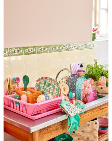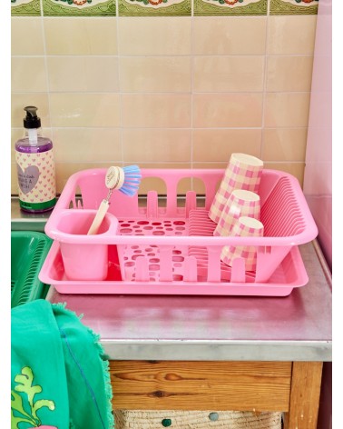 Un bel égouttoir rose coloré et funky pour mettre une touche de pep's dans la cuisine ! Il a un porte couverts intégré, ainsi qu'un porte assiettes. Son design est pensé pour que la vaisselle s'égoutte parfaitement et rapidement ! Un must !