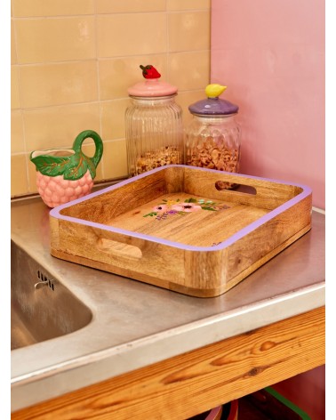 Plateau de service - Rice - bois - Purple and Flowers