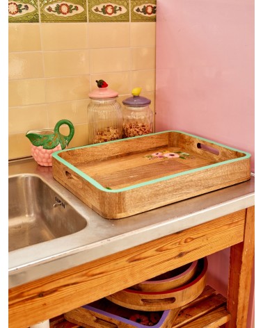 Un magnifique plateau de service aux tons pastels qui apporte de la douceur à votre déco. Utilisez le au quotidien pour préparer votre plateau télé, servir, installer votre pause du goûter. Mais pourquoi ne pas le placer tout simplement au centre de la table avec un vase et une bougie ? Il mettra n'importe quel objet en valeur.