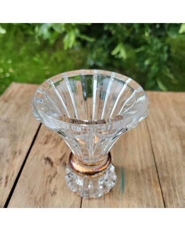 Joli vase tulipe peut etre en cristal d'arques aggrémenté d'un anneau cuivré usé