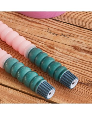 Set de 2 Bougies LED torsadées - Green and Soft pink - Rice