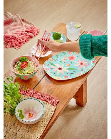 Assiette rectangulaire mélamine - Plateau Rice - Selma flower mint