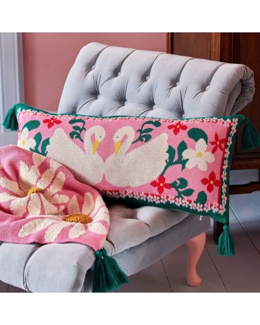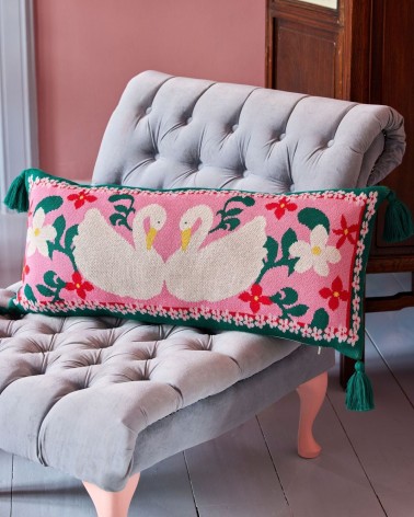 Grand coussin - Rice - Cygnes - Rose