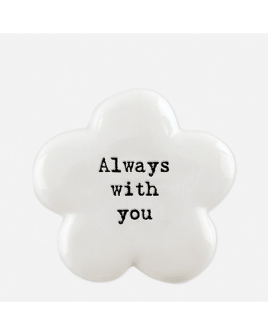 Une tendre petite fleur en porcelaine décorée d'une inscription "Always with you" (Toujours avec toi !). A offrir comme porte bonheur ou pour exprimer une émotion qui compte pour soi.