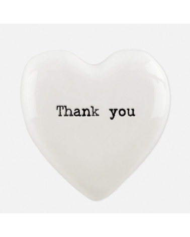 Une tendre petit coeur en porcelaine décoré d'une inscription "Thank you" (Merci !). A offrir comme porte bonheur ou pour exprimer une émotion qui compte pour soi.