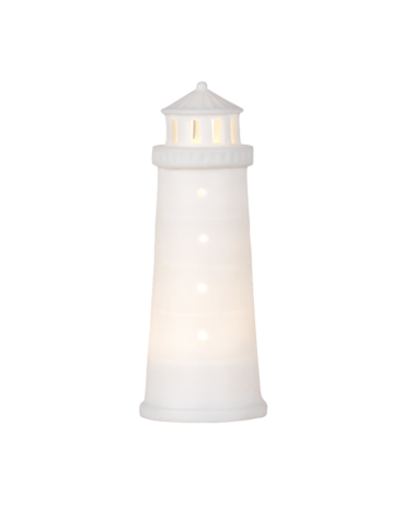 Un grand phare lumineux Rader pour ajouter une touche marine à votre décoration d'intérieur. Reposant sur un socle en porcelaine, vous pourrez y déposer une bougie pour que le phare s'illumine ... et éclaire les valeureux marins perdus en mer !