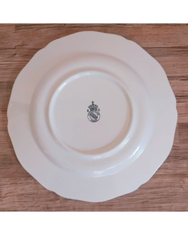 La manufacture de faïence de Lunéville est l'une des plus ancienne de France. Il s'agit ici de l'assiette de la collection "vieux Strasbourg", l'une des collections phare de chez Keller et Guérin.