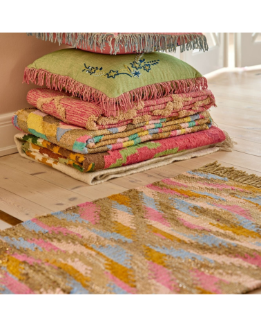 ✨Ce magnifique tapis signé Rice est multicolore avec une base dorée qui lui donne un charme fou. 100 % textile recyclé et tissé à la main, parfait pour réchauffer votre couloir ou habiller une salle de bain. 🎉La bonne humeur sous vos pieds ! 🎉