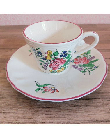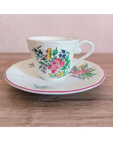 Tasse et soucoupe à thé Vintage Rose- Réverbère Lunéville - 20 cl