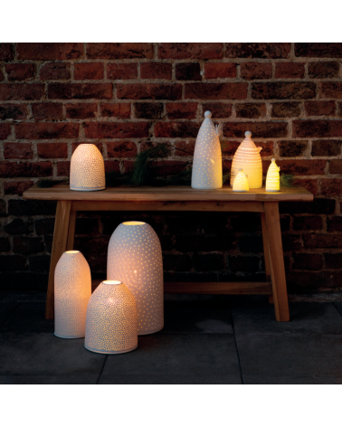 Illuminez vos soirées avec la lanterne en porcelaine blanche Räder. Son design épuré, percé de délicats petits points ajourés, diffuse une lumière douce et chaleureuse qui crée une atmosphère raffinée et apaisante. Objet déco élégant même éteint, elle s’intègre harmonieusement dans tous les styles d’intérieur.