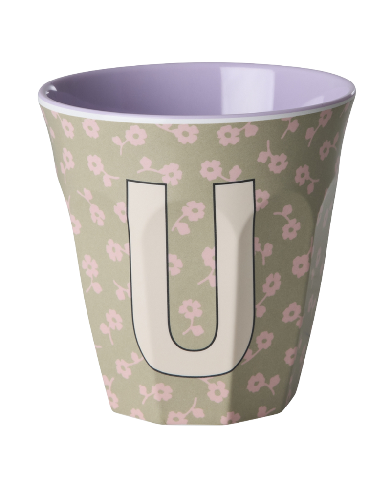 Gobelet Mélamine - Rice - Pink alphabet flowers - U