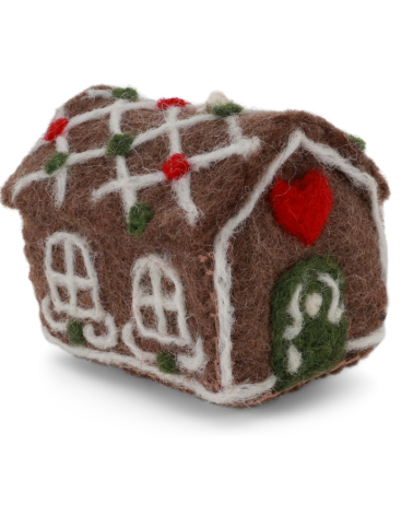 Une adorable petite maison de pain d'épices en laine bouillie pour créer un petit monde gourmand et magique dans votre maison ! A marier avec d'autres éléments de la gamme pour se plonger dans un univers féerique, enchanté et merveilleux ! Faite à la main et décorée d'un joli sucre d'orge, elle apportera un coté rassurant et réconfortant à votre décoration d'hiver.