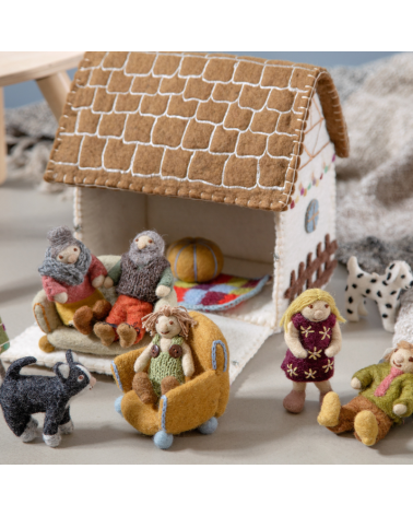 Cette petite maison est sortie de l'imagination des créatrices Gry and Sif pour notre plus grand plaisir ! En laine bouillie, entièrement faite à la main, elle est féerique, délicate et poétique. Douce, chaleureuse, elle crée une atmosphère apaisante et rassurante pour le jeu des enfants.