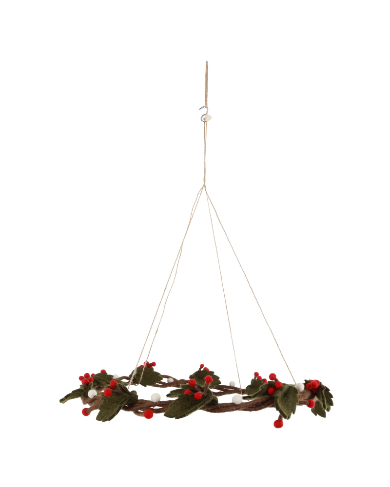 Couronne de houx en laine bouillie - Holly - 45 cm - Gry and Sif