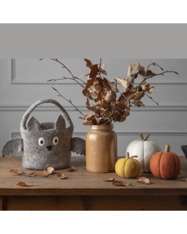 Au Panier d'Eglantine, nous avons toujours un petit faible pour tout ce qui se rapporte aux paniers ! Celui-ci est tellement drôle avec son visage de chauve-souris ! Totalement irrésistible ! Il pourra servir de panier à friandises pour faire le tour des maisons le soir d'Halloween ou bien être posé sur un buffet, près d'un joli bouquet de branchages ou d'une belle citrouille, pour un décor féerique !