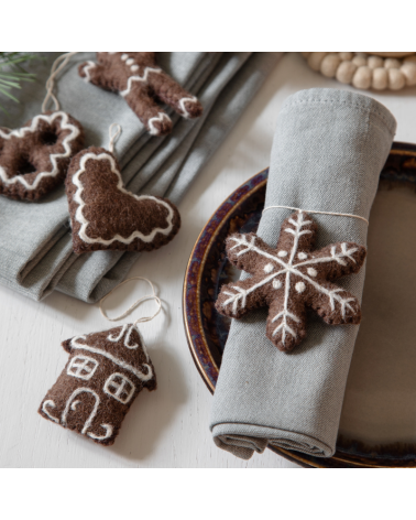 Bonhomme en pain d'épices à suspendre - laine bouillie - 8.5 cm - Gry and Sif