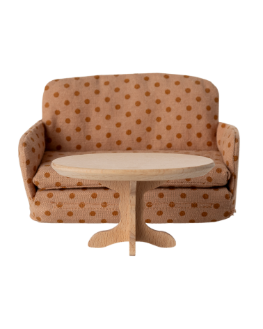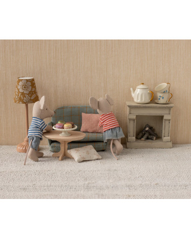 Une table miniature parfaite pour le salon des petites souris Maileg ! Elle se marie à merveille avec le canapé lit Maileg. On imagine déjà les petites souris prendre un thé ou un café !
