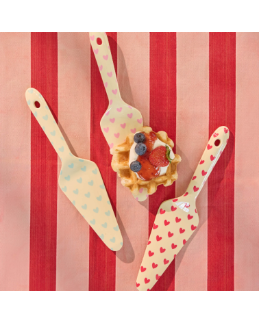 Des cœurs plein les yeux et de la bonne humeur dans vos pâtisseries ! Cette pelle à tarte à motifs cœurs est parfaite pour servir la part du gâteau maison que vous adorez ! Avec leurs couleurs vives et son design plein de tendresse, elle met instantanément de la joie sur votre table.