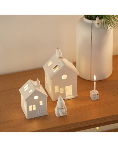 ✨🕯️🎅Apportez une touche d’élégance intemporelle à vos moments de détente avec cette maison photophore Rader en porcelaine blanche sur le thème de Noël.🎅 Sur le toit, se repose le Père Noël qui attend le traineau de Rudolf pour reprendre sa tournée.