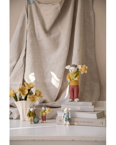 Craquez pour cette charmante petite brebis en laine feutrée ! Avec sa robe bleu brodée de fleurs, son petit sac rose, il apporte une touche de poésie et de douceur à n'importe quelle pièce.
