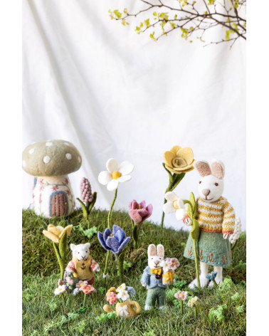 Craquez pour ce charmant lapin en laine feutrée ! Avec son veston bleu, son noeud papillon, il apporte une touche de poésie et de douceur à n'importe quelle pièce.