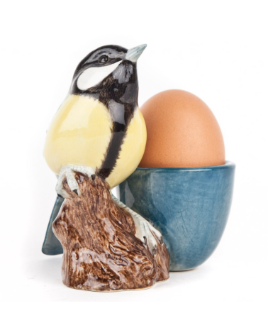 Ce ravissant coquetier représente une mésange minutieusement peinte à la main, perchée avec élégance contre son support. Son plumage aux nuances subtiles – jaune doux, vert tendre et noir profond – est sublimé par de fins détails qui capturent toute la vivacité et la grâce de cet oiseau emblématique de nos jardins. Chaque coup de pinceau révèle le soin apporté à la réalisation, rendant chaque pièce unique.